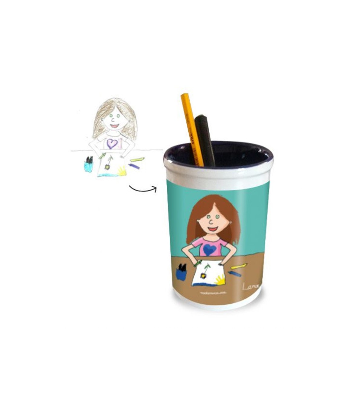 Le cadeau qui fait la différence grâce à un petit travail de graphisme. Le dessin de votre enfant est tout simplement sublimé et une fois que vous validez la maquette après réception par mail, vous recevez ce joli pot à crayons en céramique.