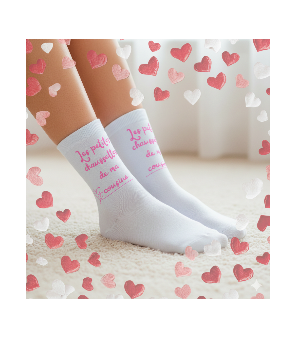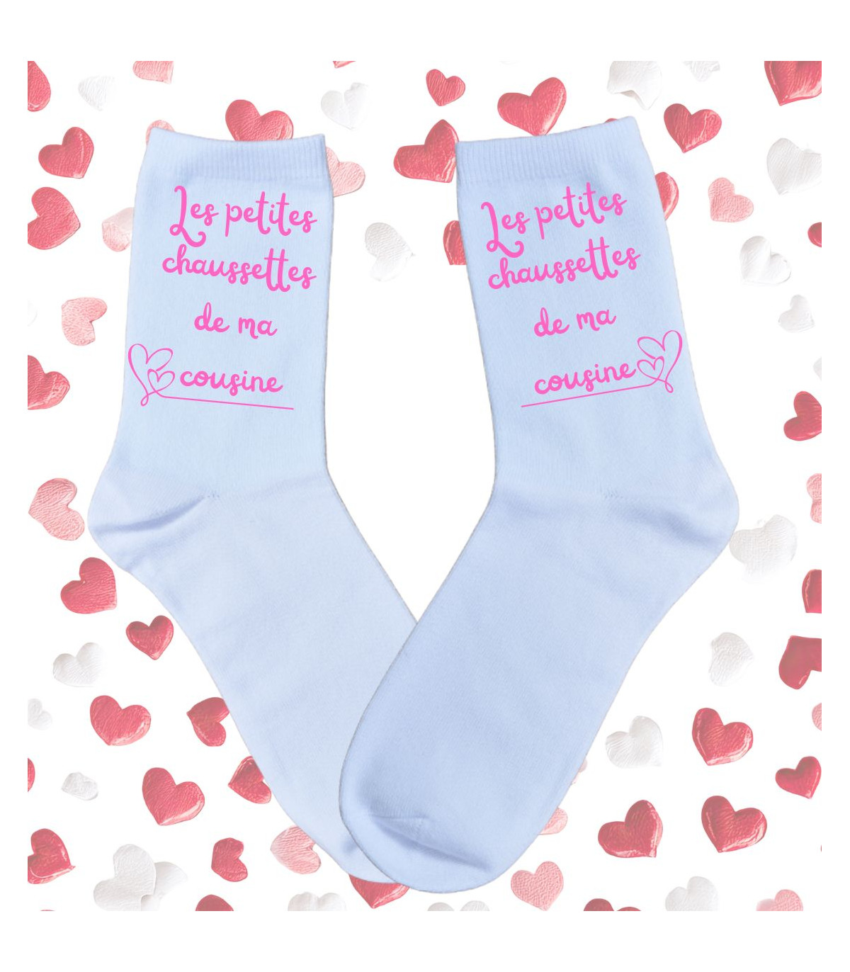 Vous cherchez une idée cadeau qui sorte de l'ordinaire pour votre cousine ? Nos chaussettes blanches "Une Cousine d'Amour" sont l'accessoire indispensable pour toutes celles qui aiment allier style et confort. Avec leur design épuré et leur message tendre, elles célèbrent ce lien familial unique que vous partagez, que ce soit pour un anniversaire, une fête ou juste pour le plaisir d'offrir.