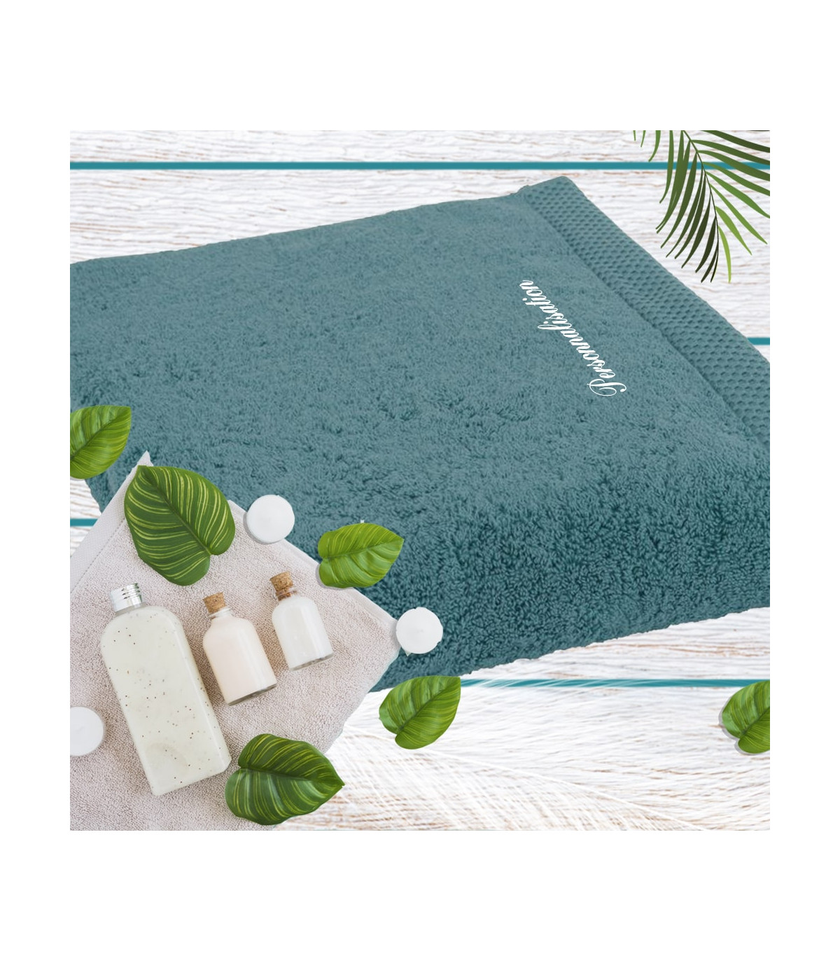 Faites le choix d'un produit durable et d'une personnalisation haut de gamme. Ce drap de bain bleu pétrole est l'alliance parfaite entre esthétisme moderne et confort traditionnel.