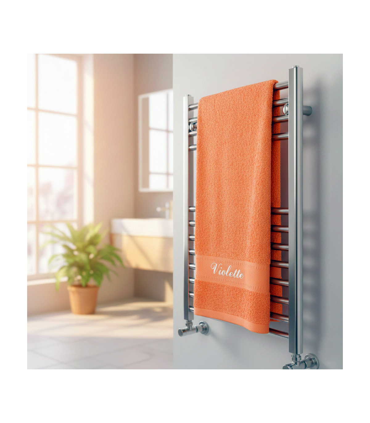 Le drap de bain brodé par Camille est vraiment une excellente idée de cadeau personnalisé ! Sa couleur Orange vibrante apporte énergie et gaieté à votre salle de bain, vous assurant un réveil tonique ou un moment de détente chaleureux.