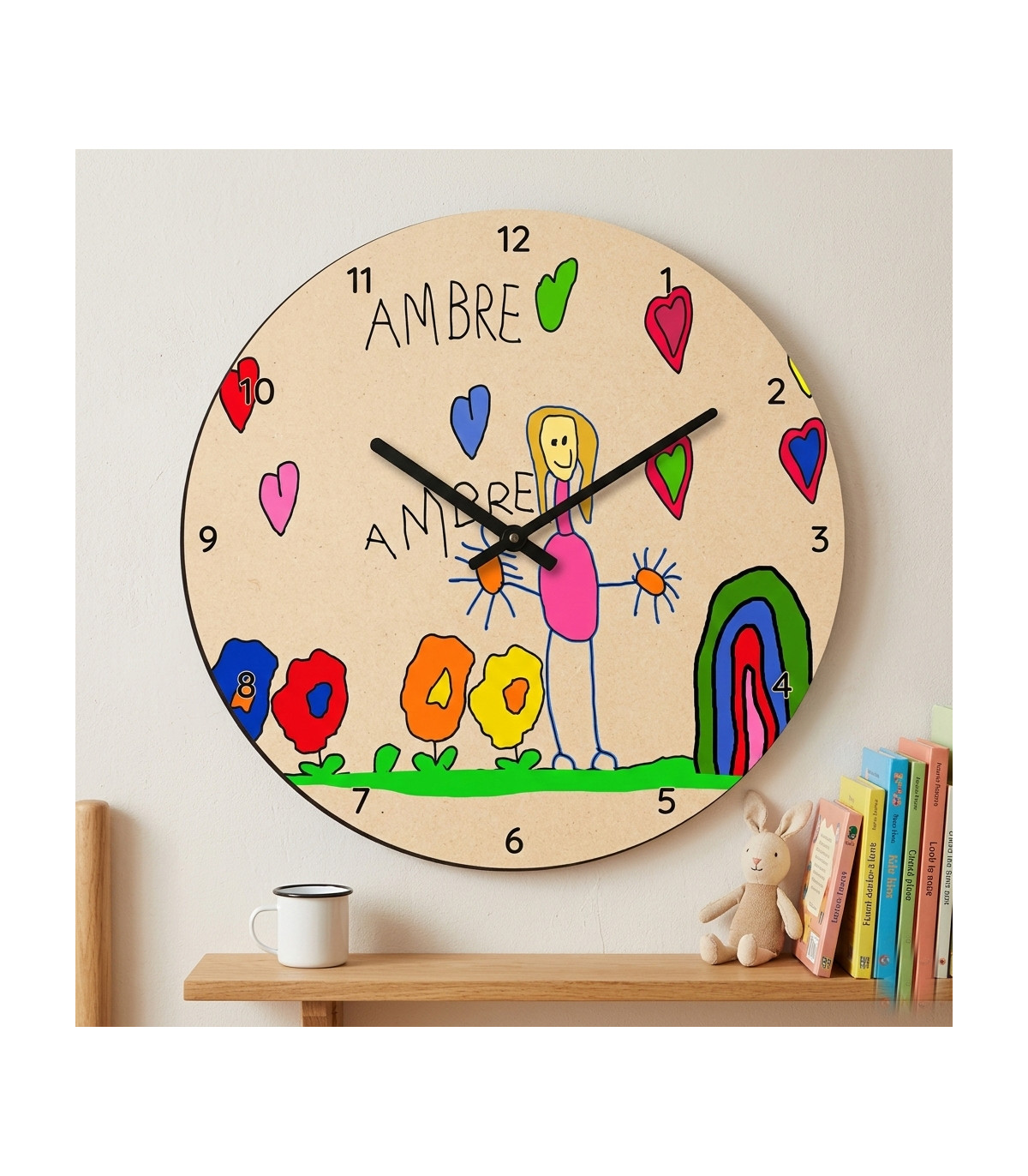 Le temps passe vite, et les enfants grandissent encore plus vite. Capturer leurs dessins d'aujourd'hui pour en faire des objets de demain est la plus belle façon de figer le temps. Nos horloges en bois MDF sublimées sont prêtes à rejoindre votre foyer et à y apporter de la joie et de la couleur.