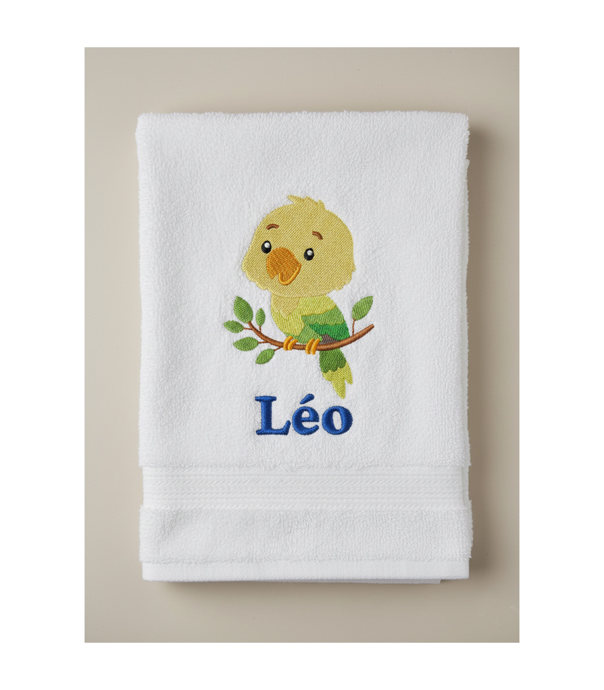 Vous êtes à la recherche d'une idée cadeau originale et pratique ? La personnalisation par broderie est la garantie d'un présent réussi. Réalisée avec une grande précision dans notre atelier, la broderie de ce petit canari jaune apporte une touche de poésie à la salle de bain. C'est le cadeau parfait pour une naissance, un anniversaire ou un baptême, marquant une attention particulière pour l'enfant et ses parents.
