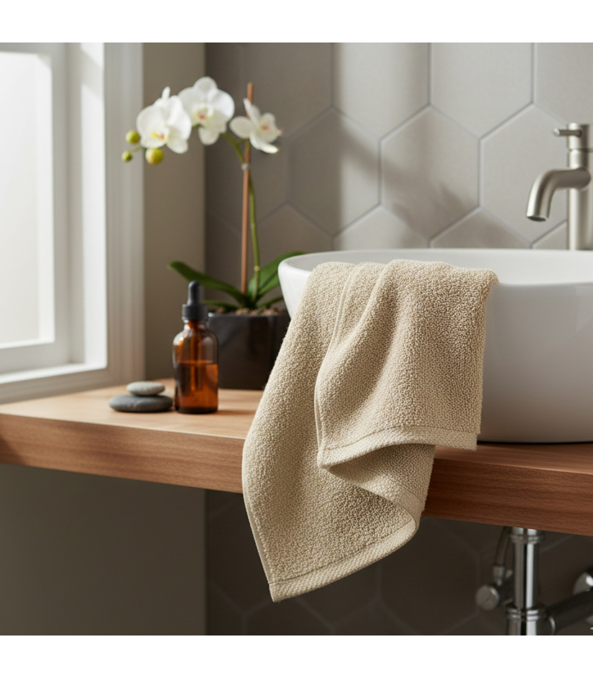 Drap de Bain Beige Brodé : L'Élégance Neutre et Moelleuse